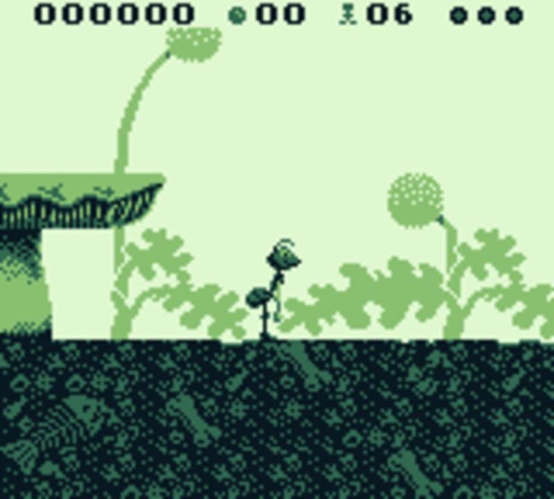 Based on the Disney/Pixar 3D animated film, you must guide Flik as he sets out to find a group of warrior insects to help his colony of ants to fight off the hungry grasshoppers. Unlike the other versions of this game, the GBC version is a 2D side-scroller. You must guide Flik in finding parts for his inventions. Along the way, you must avoid other enemy insects, including the grasshoppers, or hit them with berries.