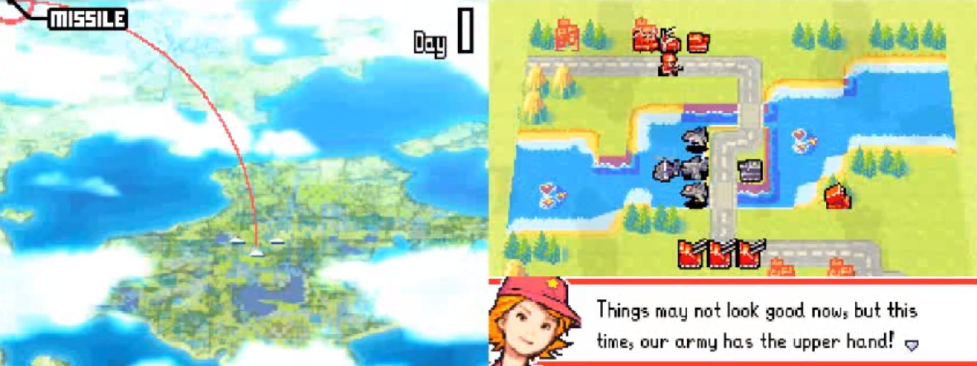 Advance Wars: Dual Strike is the third installment in the Advance Wars series (first on DS media). Advance Wars is the international title of the Wars video game series, which dates back to the Family Computer game Famicom Wars in 1988. The storyline is a continuation of the previous series and is set in the new location of Omega Land. Black Hole has returned under the leadership of a new commander who seeks to give himself eternal life by draining the energy of Omega Land. The Allied Nations struggle to overcome this threat and are eventually joined by several former Black Hole commanding officers in an effort to save the land.