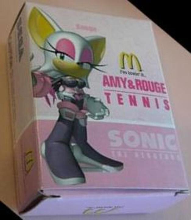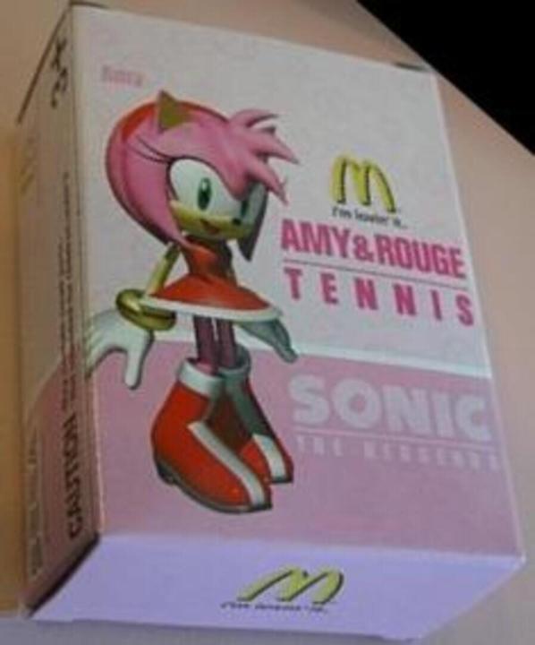 Amy & Rouge Tennis is an LCD game created for distribution in McDonald's chain of fast food restaurants. They were offered as a part of Happy Meals for a limited time in 2004. This game was also repackaged and sold under the name Amy & Rouge Volleyball, with a different background behind the LCD screen. There is a directional pad which includes left and right directions and a single button. The background seems to be that of a tennis court. The object of the game is to hit a ball back at an opponent on the end of the screen using the 1 button. If the opponent misses the ball the score tally goes up. If you miss the ball, then the opponent's score tally will go up instead.