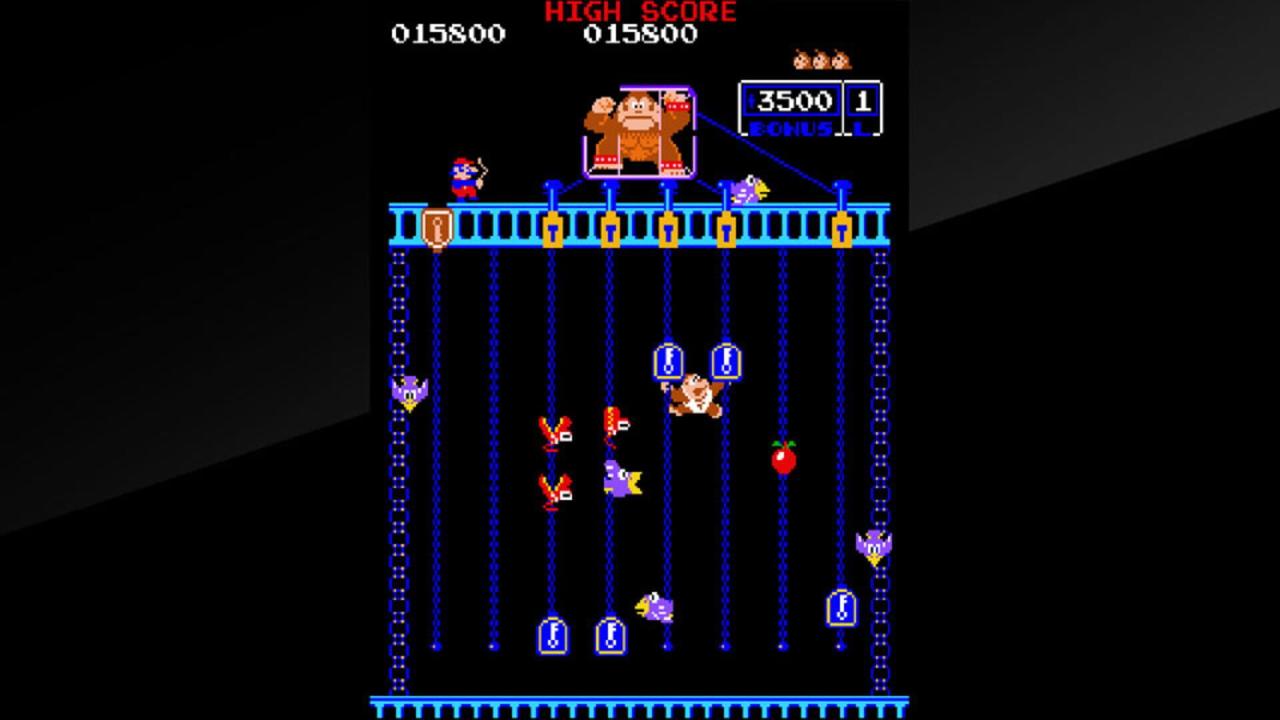 Donkey Kong Jr. is an action game released by Nintendo in 1982. Donkey Kong has been captured and caged in his latest encounter with Mario. Donkey Kong Jr. is on his way to set him free! Skillfully jump and hang on to vines, avoid the enemies, get to the top, and steal the cage's key from Mario.