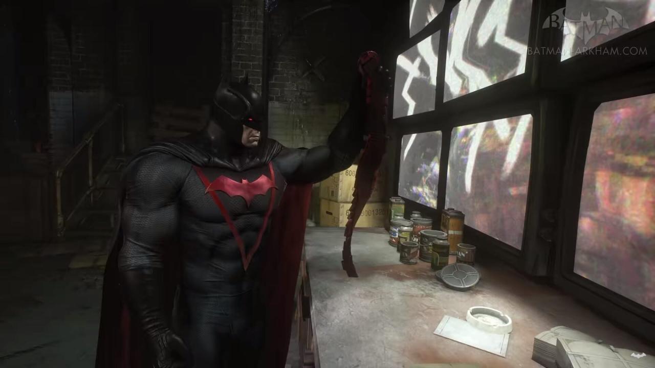 This addon includes the Earth 2 Dark Knight costume (exclusive for PS4 and the Epic Games Store version on PC). Previously, this costume was only available in North America in special giveaways (Mountain Dew Campaign) and as an e-mailed reward for visitors attending the E3 2015 event. It was included as free DLC with the 2019 Arkham Collection release before it was released as free DLC in January 2020.