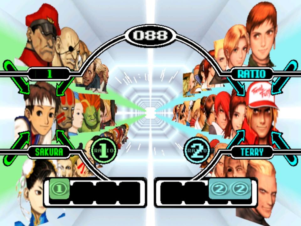 Two of the worlds greatest arcade fighter developers, Capcom and SNK, join forces to finally answer the question asked by many for years: Who is the dominant fighter? A range of fighters from both worlds are available to choose from, with two different fighting styles (Capcom and SNK, of course) meaning that players of both worlds can fit into the game easily, while new gamers can try Ryu using the SNK format.