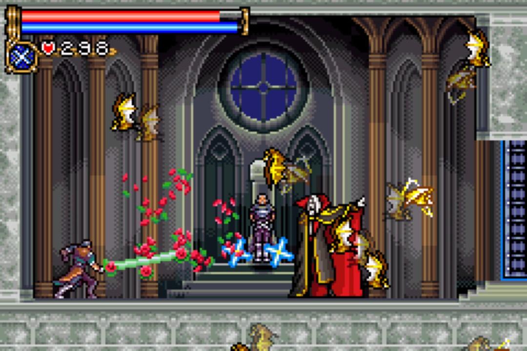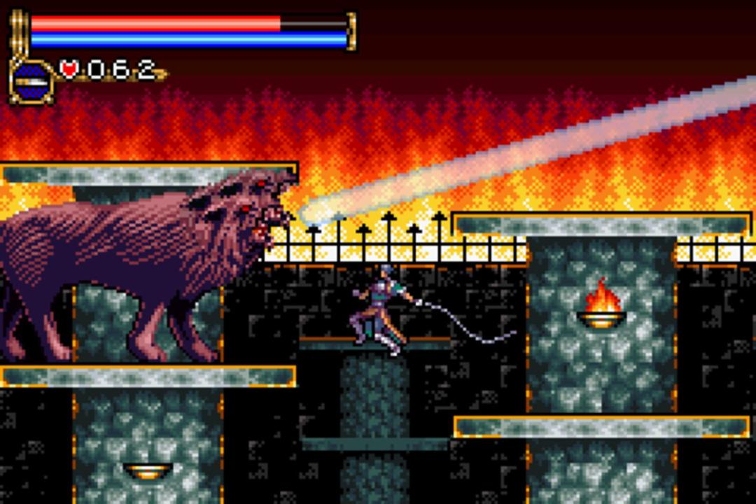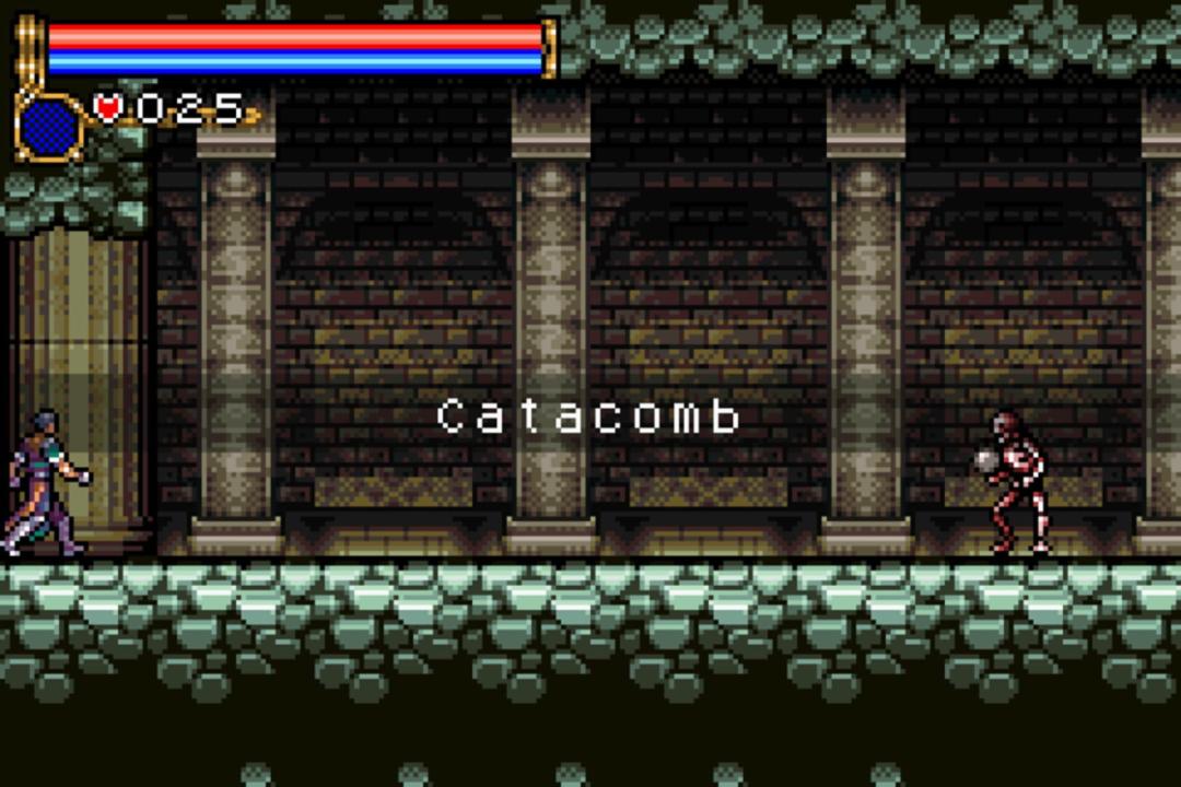 Castlevania: Circle of the Moon is the first of the series to be based on the action/RPG structure of Castlevania:Symphony of the Night rather than the level-based action style of all previous Castlevania games. Dracula's castle is a single continuous building, and as Nathan discovers artifacts within it he gains new abilities that allow him to explore more of it. While Nathan can only use his Killer Whip as a weapon, he can find and equip different kinds of armor and accessories that change his stats. Unique to this entry in the series is the Dual Set-up System, where a combination of two cards will give Nathan unique magical abilities. For example, equipping a fire type card with a whip card will give the Killer Whip a fire attribute, while equipping it with a summon card will let Nathan summon a fire demon to attack onscreen enemies.