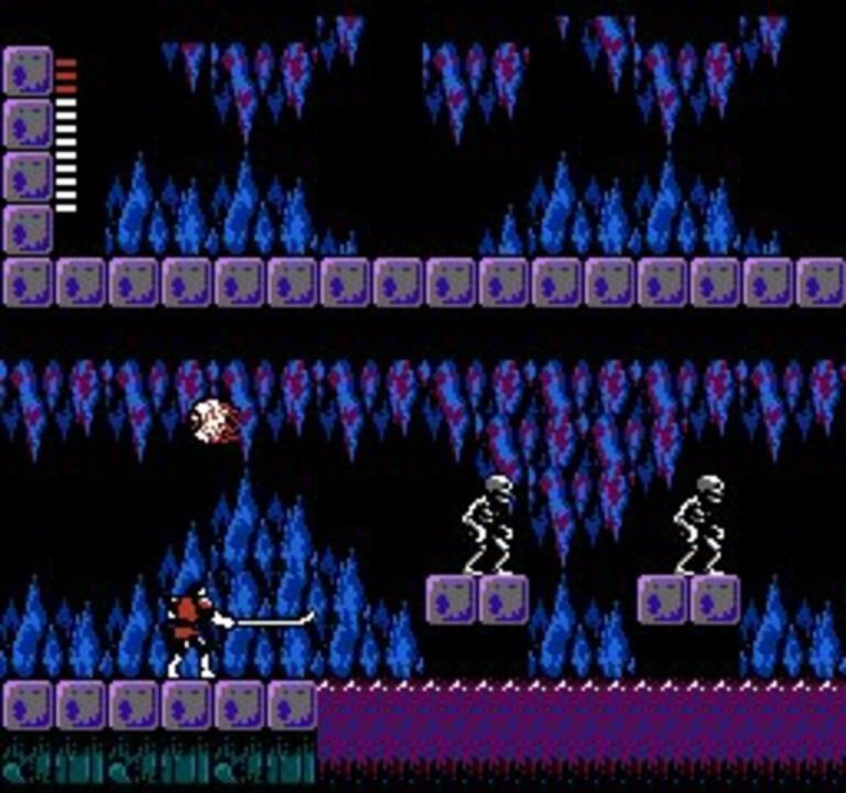Castlevania was a cakewalk compared to this bloody curse. You thought you had the Prince of Darkness defanged - eh, Simon Belmont? Well think again, 'cause according to a damsel in distress, evil Count Dracula has left a horrifying curse in his wake. And the only hope you have of ending the terror is to destroy his missing body parts! Talk about your frightening quest, searching a maze of mansions, graveyards and dark, eerie forests - each guarded by man-eating werewolves, fire-throwing zombies and other devilish demons. Your grim chances are kept alive in Transylvania, where cowardly villagers offer clues to the whereabouts of Dracula's remains. And where you'll purchase magic weapons, including silver knives and flame whips. But beware the night. For when the sun disappears, Dracula's curse grows deadlier. And your chances grow dimmer and dimmer.