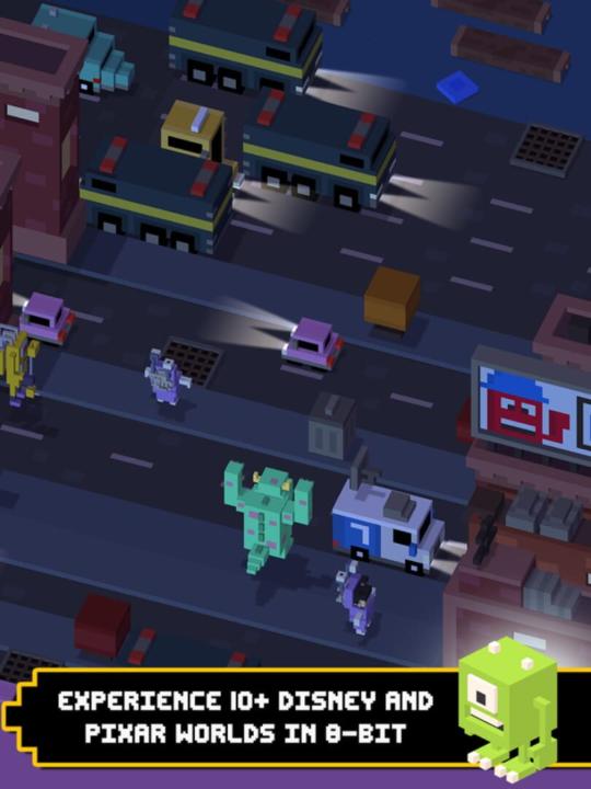 "Why should the chicken get all the fun?" From Hipster Whale, the makers of the original Crossy Road with over 120,000,000 downloads, and Disney comes Disney Crossy Road, an all-new take on the 8-bit endless adventure to cross the road without splatting! Tap and swipe your way to a record-setting number of steps with 400+ Disney and Pixar figurines while dodging crazy and unexpected obstacles in 8-bit worlds! COLLECT over 400+ Disney and Pixar figurines (many with fun surprises)! JOURNEY through 8-bit depictions of iconic locations while enjoying 8-bit versions of familiar tunes! MASTER special themed challenges unique to each of the worlds and then some!