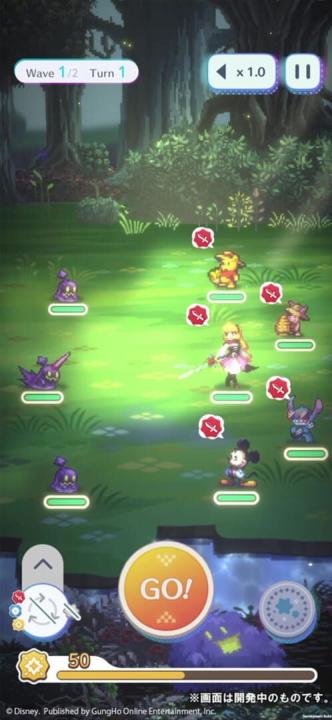 Crossover Disney mobile RPG, with simple controls and a pixel/retro art style.