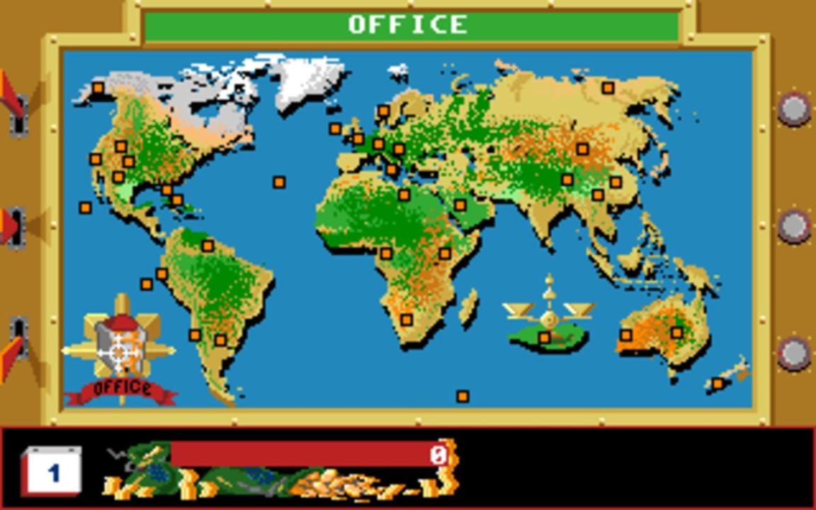A money-making strategy game. Become the MacDuck the richest duck on the world. Your goal in this game looks simple : Making money. But to do so, you have to manage your cash, make good investments and of course look for treasures with your animated friends. Versions: - Amiga/DOS features copy protection in the form of a unique password system. When the game is booted up, you must use a key script (located in the game manual) to translate symbols on the screen. If you fail, you are identified to the game as a Beagle Boy invader, and it will send the user back to the DOS prompt to try again or shutdown the pc on Amiga version, and there is no way to play the game without deciphering the code. In at least the Amiga version of the game, a flying saucer can rarely be seen during the flight sequence. The condition which triggers the event is not known. - A version of this game was advertised for the ZX Spectrum, but was later canceled. - Although marketing materials for an Apple II port exist, there is no evidence that this version was ever published or sold.