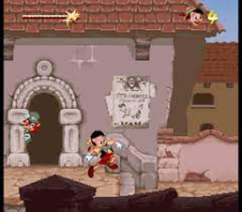 Journey through as Geppetto, the carpenter's live wooden puppet, Pinocchio, as he did in his Disney animated film - which itself was based on a children's novel. Have Pinocchio run, jump and twist-kick through all the familiar places, including the inside of a whale, and do good deeds enough to become the real human boy he's always wanted to be.
