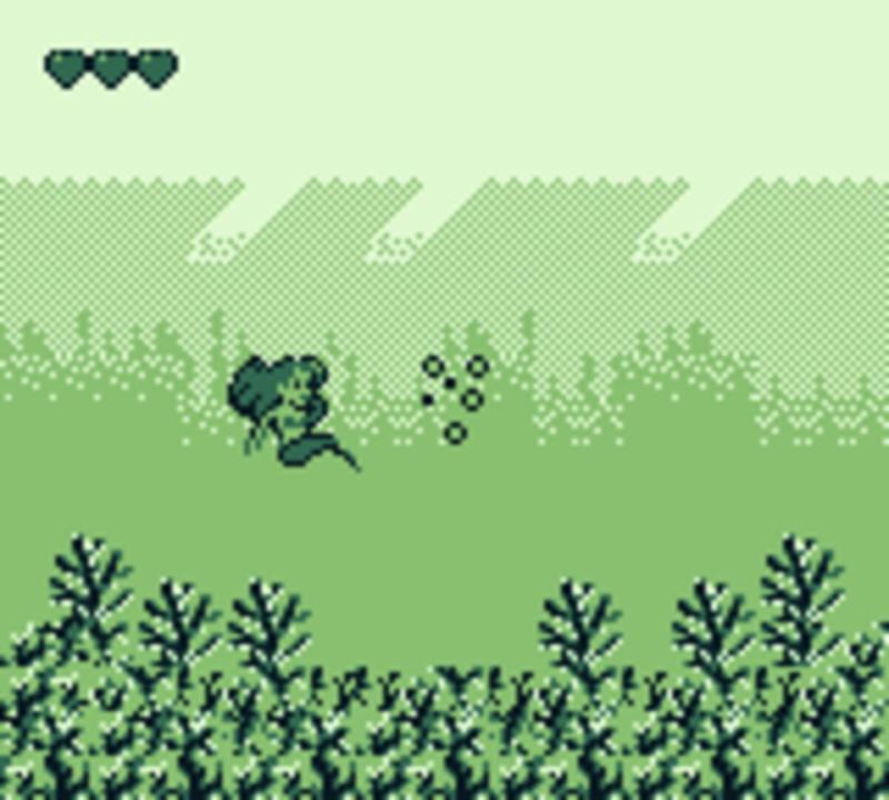 The game takes place from a side view and Ariel (Swimming most of the time, but hopping around on the land occasionally) can shoot bubbles to trap her foes and can then throw them at each other. She can also dig through sand to find treasure and pick up sea shells to help her break chests open. The treasure she finds in the sand is usually just bonus points, but the treasure you find in chests will increase your bubble's power and range.
