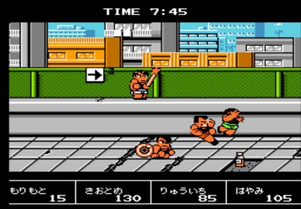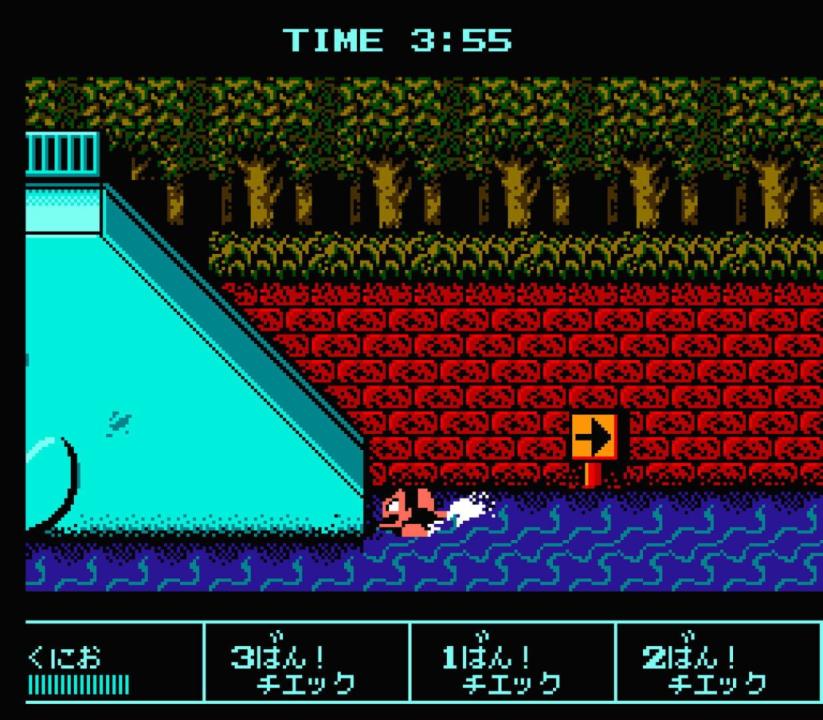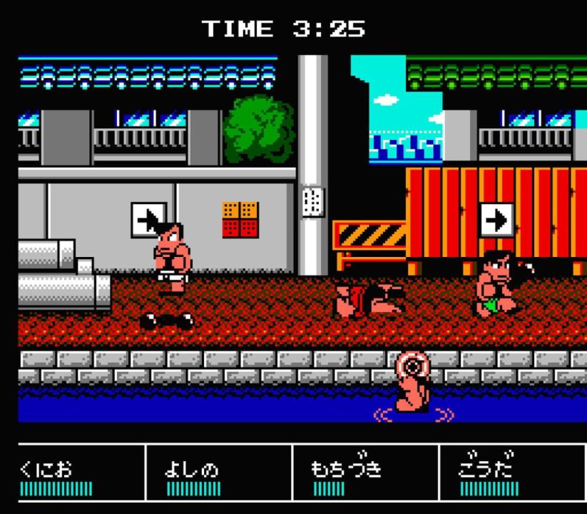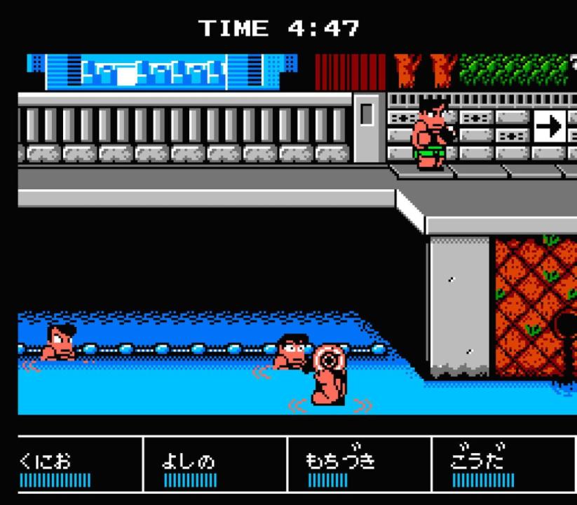 This prequel to the game known in the West as Crash'n the Boys: Street Challenge sees Kunio-kun competing in four not-so-traditional athletic events. The game was originally released as Downtown Nekketsu Koushinkyoku: Soreyuke Daiundoukai, but has since been localized as Downtown Nekketsu March Super-Awesome Field Day!