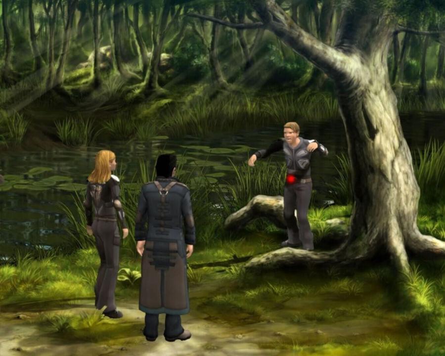 DWK 5: Hinter dem Horizont is a traditional point & click adventure game based on the movie Die wilden Kerle 5: Hinter dem Horizont. The young soccer players Leon, Vanessa, Maxi and Raban are practising in the woods - but suddenly Leon disappears. Of course his friends search for him and suddenly arrive in the land of vampires... The player alternately takes the control of the four protagonists and solves item based puzzles. To do so he explores his surroundings, takes everything he finds, talks with people and combines items with each other. In each scene the player can instantly switch between day and night which alters the persons he meet and the items he can interact with. When stuck the player has access to a hint system.