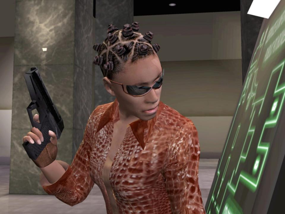 The game was written and directed by the Wachowski brothers, and its plot is intertwined with that of the second movie, The Matrix Reloaded. Enter The Matrix casts the player as Niobe or Ghost, captain and first mate of the rebel ship Logos, respectively. Niobe is a master combatant, capable of beating up everyone in her way. She is an excellent pilot, both in the real world and in the Matrix. Ghost is very adept at firearms, and his marksmanship is a mastery. Both characters are very athletic, and throughout the game the player will have to walk, run, jump, strafe, peek, run on walls, climb ladders and pipes, and fight various enemies.