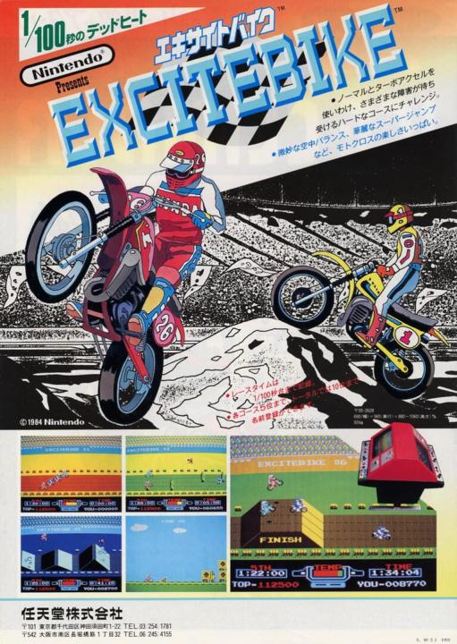 Excitebike is a motocross racing video game franchise made by Nintendo. It first debuted as a game for the Famicom in Japan in 1984 and as a launch title for the NES in 1985. It is the first game of the Excite series.