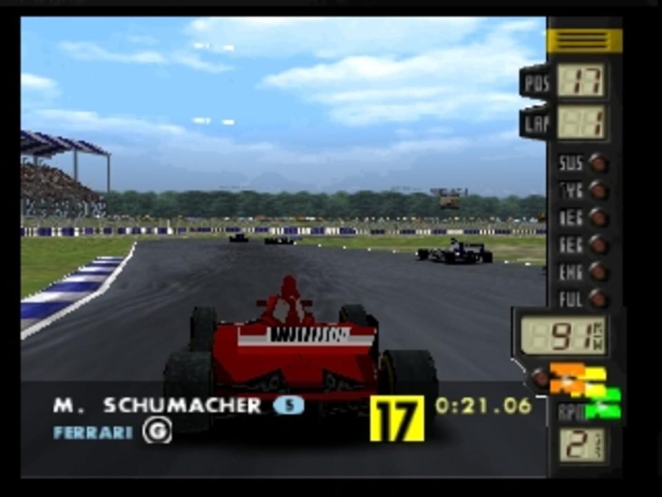 The game consists of five gameplay modes: Grand Prix, a course-by-course simulation of the 1997 season; Exhibition, a single race; Time Trial, a race against the clock and Challenge, which comprised real scenarios from the 1997 season-examples include trying to win the 1997 Hungarian Grand Prix as Damon Hill or beating Jean Alesi as David Coulthard in the 1997 Italian Grand Prix. The final mode allowed 2 players to compete in a single, split-screen race.