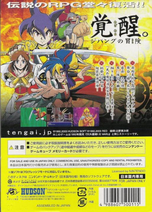 This is a remake of the original Tengai Makyou II game for PC Engine. You control Majinmaru, a young warrior who is chosen by the destiny to rid the ancient world of Jipang from the evil, and the allies he meets on his journey. The game is set in a unique alternative medieval Japan, a world which is mostly based on the European's image of Japan, with deliberately exaggerated characteristics and clichés. The graphics have been completely remade, although the 3D characters were made to look in the style of old 2D RPGs. There are also many anime-style videos who have a distinctly comic look. The battles are fought from first person perspective, and have a fairly standard system of physical attacks and magic.