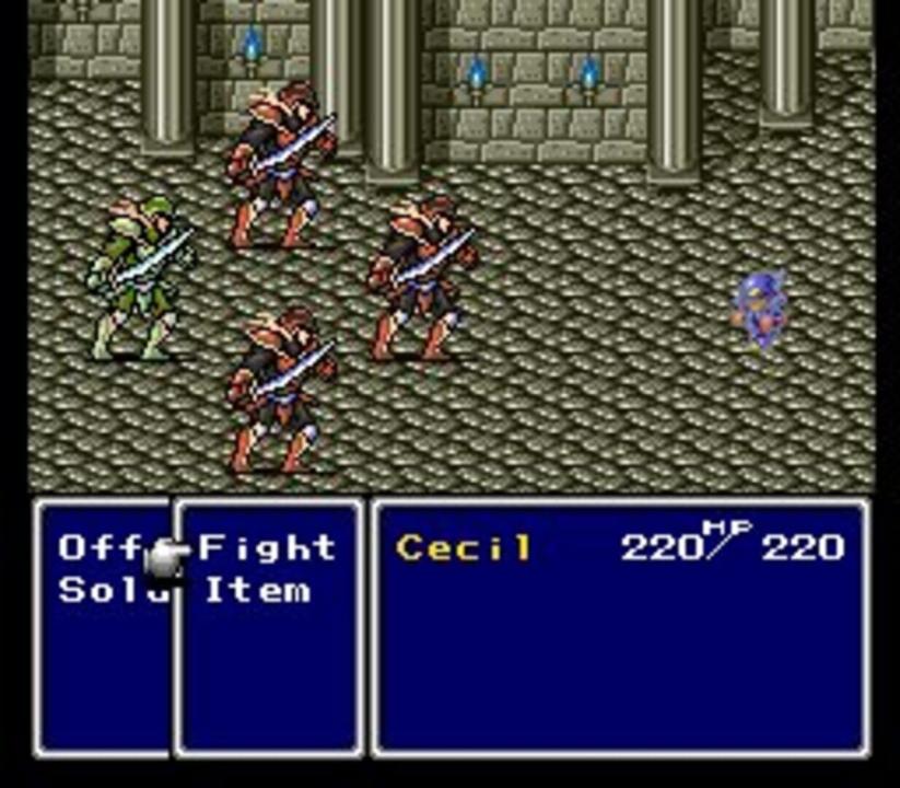 The fourth entry in the Final Fantasy series was released as Final Fantasy II in the West, because the second and the third games were not released there at the time. The game is a Japanese-style RPG with top-down world map navigation, automatic leveling up, and random enemy encounters.