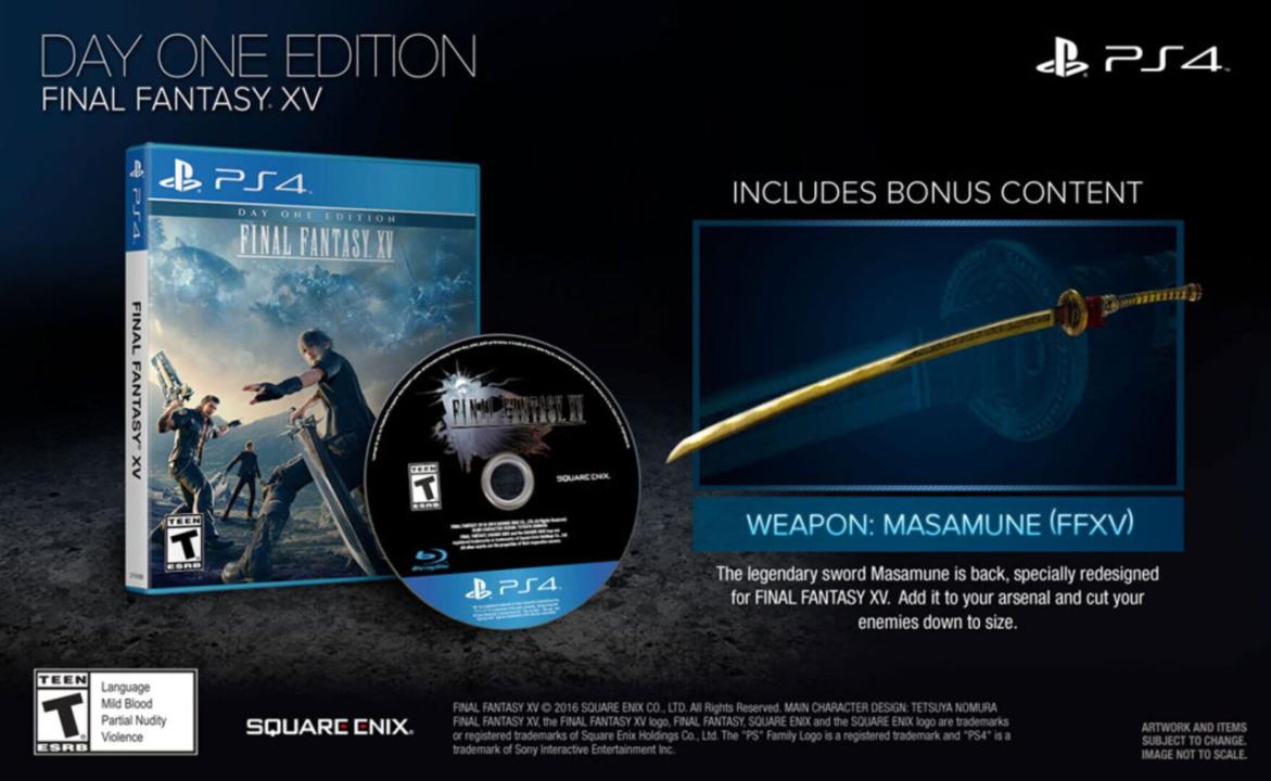 Take the journey, now in ultimate quality. Boasting a wealth of bonus content and supporting ultra high-resolution graphical options and HDR 10, you can now enjoy the beautiful and carefully-crafted experience of FINAL FANTASY XV like never before. The Day One Edition of Final Fantasy XV includes the Masamune in-game weapon.