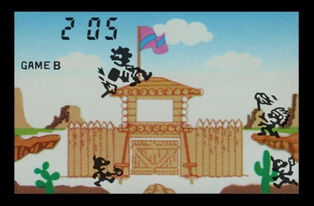 The Game & Watch game Fire Attack, released March 26, 1982, was a game where your character is a civil war-looking general, trying to defend his fort from an onslaught of Native Americans attacking with flaming torches.