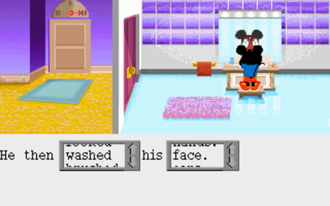 Follow the Reader is an abandoned adventure game for children, set in the Disney universe featuring Disney Characters. Practice your reading through an interactive storybook experience and live one day as Mickey Mouse! Select different actions to be read by a narrator as Mickey does the actions chosen by the player. Players can save the game and then load and watch the story they've helped create take place without them pressing on anything.