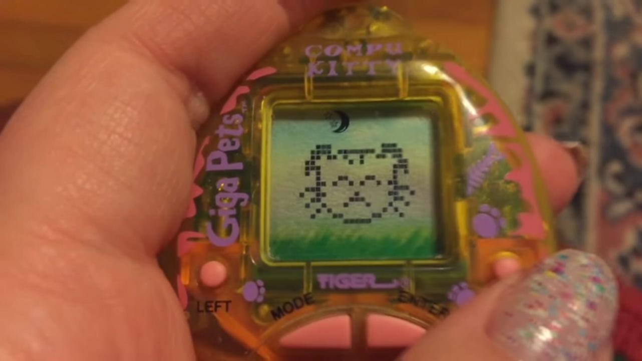 Giga Pets are digital pet toys. Available in a variety of different characters, each Giga Pet is a palm-sized unit with an LCD screen and attached key ring. To ensure a happy, healthy pet, its owner has to take care of it similar to how one might care for a real animal, including feeding, cleaning, and playing with their Giga Pet.