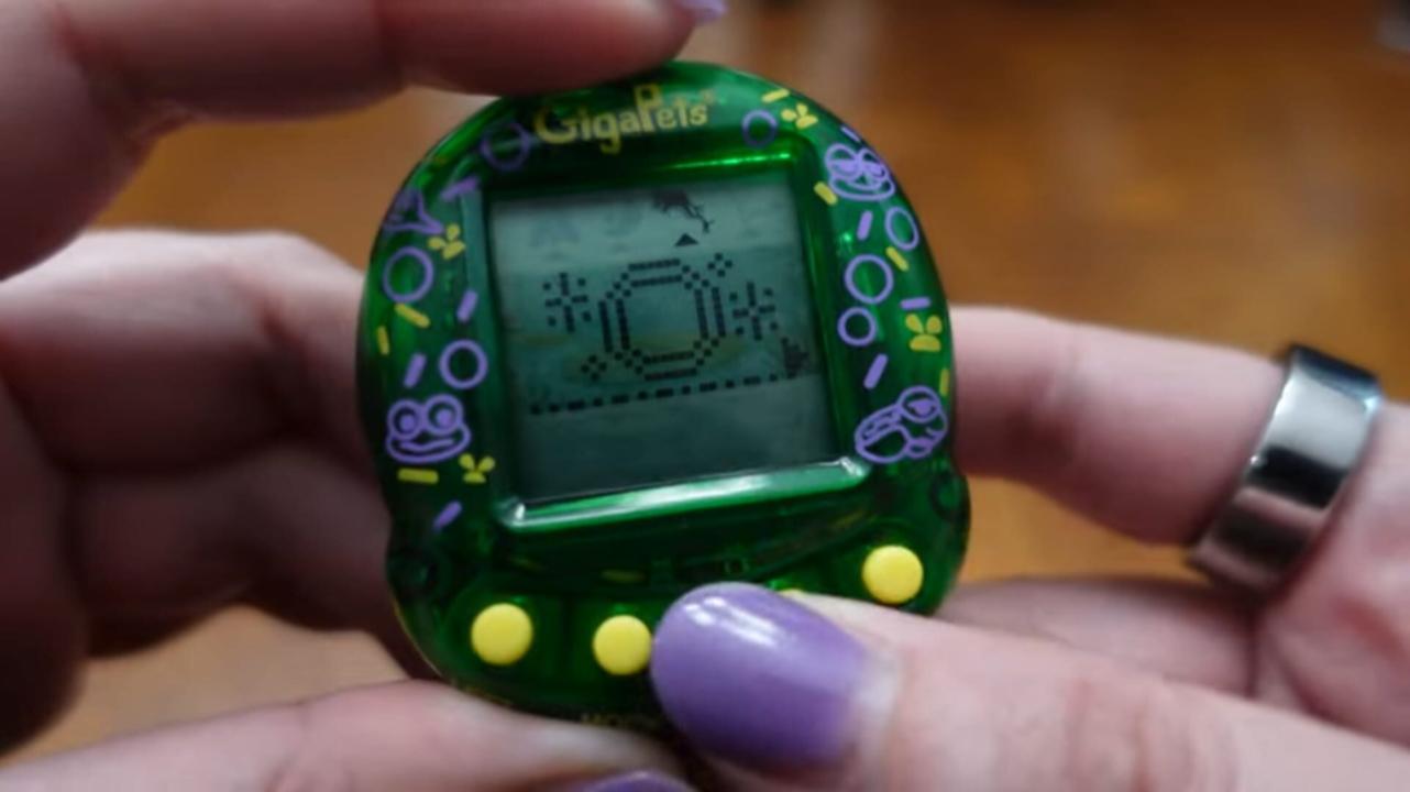 Giga Pets are digital pet toys. Available in a variety of different characters, each Giga Pet is a palm-sized unit with an LCD screen and attached key ring. To ensure a happy, healthy pet, its owner has to take care of it similar to how one might care for a real animal, including feeding, cleaning, and playing with their Giga Pet.