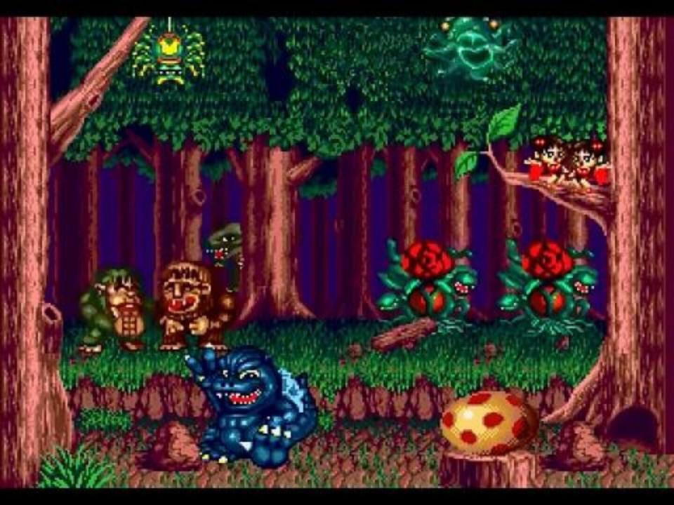 The game consists of multiple "pages," which act as hub levels. Each page contains multiple kaiju, which can be clicked on and interacted with. This causes some kaiju to perform different animations, while with some kaiju it will activate minigames. The player is in control of Godzilla. The first page is a forest, and features Sanda, Gaira, Gorosaurus, Mothra, Kamacuras, Kumonga, Dogora, two Biollantes and the Cosmos. Clicking on Godzilla causes him to dance, after which everyone on the page will applaud. Eventually, a large spotted egg will drop down onto the screen, startling everyone on the page. If Godzilla interacts with the egg, it will hatch into Little Godzilla. Interacting with Sanda and Gaira causes them to punch and kick each other. Interacting with the Biollantes causes them to briefly shift from their rose forms to their final forms and roar at Godzilla. Interacting with the Cosmos causes them to sing, which will briefly summon Mothra onto the screen, who roars and flies offscreen again. Occasionally, Kumonga, Dogora, or Kamacuras may appear through the trees on the top of the screen. Gorosaurus is constantly stalking Godzilla from behind the trees. Interacting with him activates a minigame. In this game, Godzilla ties balloons to his tail and competes with Gorosaurus to jump into the sky and grab stars. Whichever monster has more stars in their possession by the end wins. A second minigame is available on the page, which appears to be initiated randomly. This minigame consists of the Cosmos standing on a teeter-totter. A kaiju - either Godzilla, Biollante, Mothra larva, Dogora, Kumonga, or Kamacuras- will be placed on one side of the teeter-totter, and the player must balance it by placing other kaiju or differently-sized weights on the other side. After the player successfully does this multiple times, the game is complete. Another minigame that also appears to happen randomly features Godzilla standing next to three differently-sized rocks, and three differently-sized holes. Godzilla will grab one of the rocks, and the player must choose which of the three holes it fits into. After the player does this correctly for all three rocks, the game will be complete.