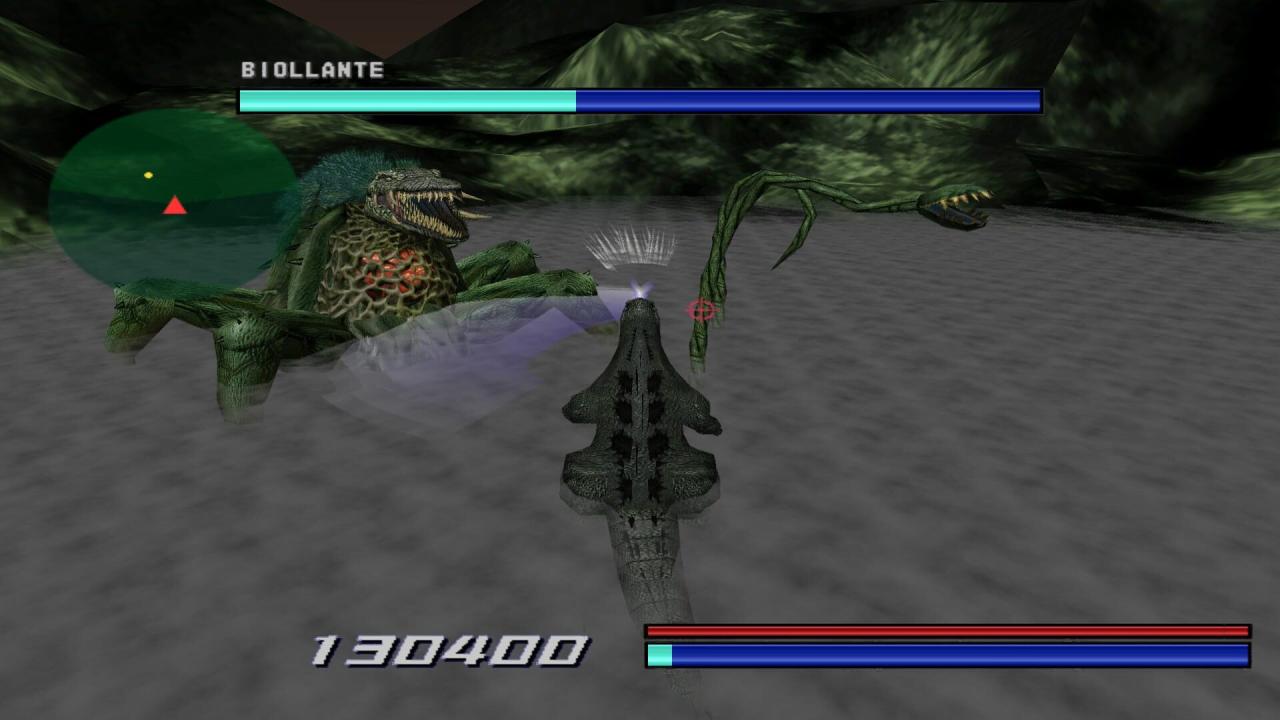 Godzilla Generations: Maximum Impact is a sequel to the Dreamcast launch title Godzilla Generations. Both are based on the famous Japanese movies series around the eponymous Godzilla, a giant dinosaur-like monster. The game is a rail shooter like the famed Panzer Dragoon, where you move on a fixed path but can shoot in all directions to take down waves of approaching enemies. The game also features a dodge and a lock-on mechanic. The gameplay is divided in two kinds of levels. The first style features Godzilla rampaging through a Japanese city and taking down all kinds of military devices which try to stop him. The second kind of level is a fight between Godzilla and other giant monsters from the various films.