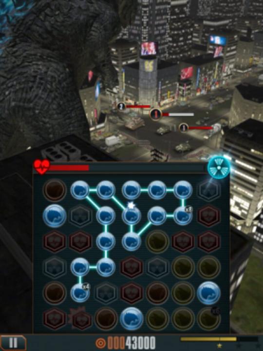 Unleash the power of Godzilla and pursue the dangerous MUTO monsters in this unique mix of jaw-dropping 3D action and challenging puzzles. Control each stomp, slash, and bite by matching - or SMASHING - puzzle tiles to drive Godzilla through 80 levels in cities across the globe. Upgrade Godzilla to match your play-style and call upon friends in times of need. Use powerful boosts to conquer new objectives and puzzles in each level, or build up energy to release Godzilla’s signature ATOMIC BREATH.