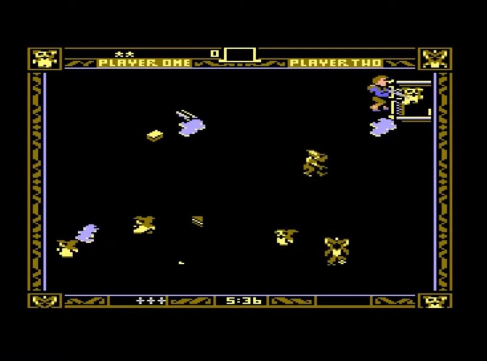 The top-down adaption of the 1984 film, "Gremlins" for the 5200, Commodore 64, and Apple II. Players have to capture all of the Mogwai. A different release of the same name using a side view was released for the Atari 2600.