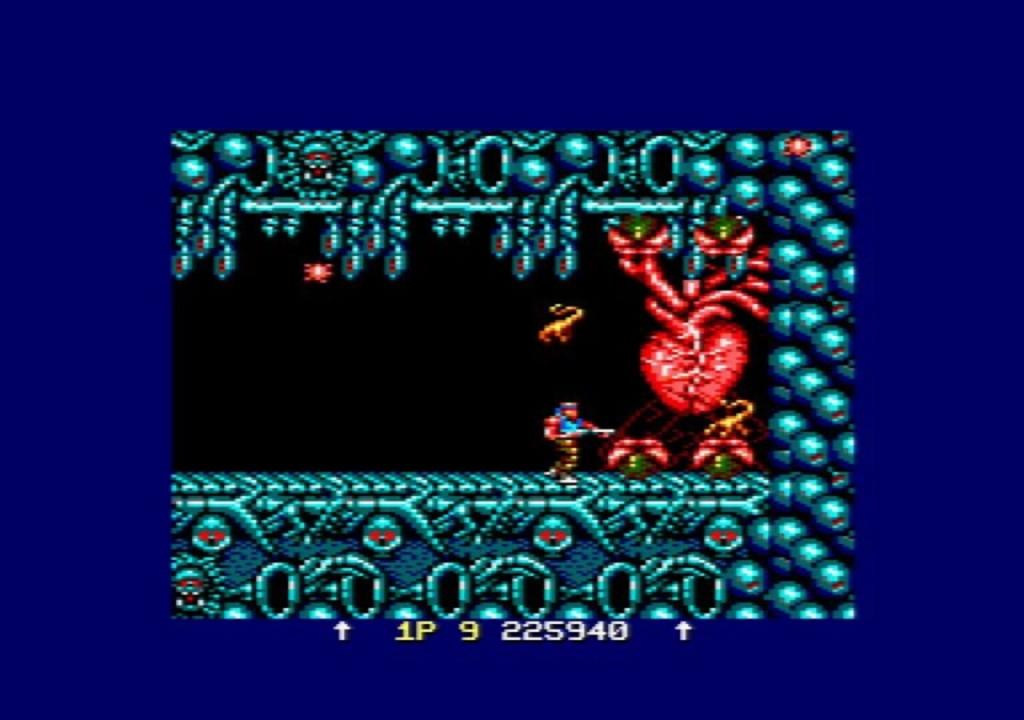 The Amstrad CPC port of the Arcade game Contra. As either Bill (player 1) or Lance (player 2), the player must get to the end of each stage, shooting everything in sight, while avoiding enemy fire themselves. The player can upgrade their standard-issue rifle into one of four different weapons, including the powerful spread shot.