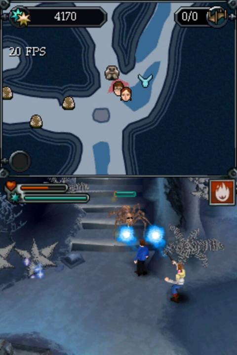 The Nintendo DS version is played in the puzzle based gameplay. The game shows a map of the area on the top screen, and a 3D top-down view of Harry and his nearby surroundings on the lower touchscreen. In the game the player controls Harry Potter with the stylus, moves him by dragging the stylus to the sides of the screen, and uses the stylus to equip spells and objects or attack enemies by tapping on them. In addition to the main character, Ron and/or Hermione are present to help in combat. Although these characters are computer-controlled, they will attack the same enemy Harry targets. The game also features a multi-player mode where two players, using Wi-Fi connectivity, can play against each other with one player guiding Harry Potter to hunt for magic points, while the other controls three Dementors who try to hunt him down. In the game the player aims to get the highest score.