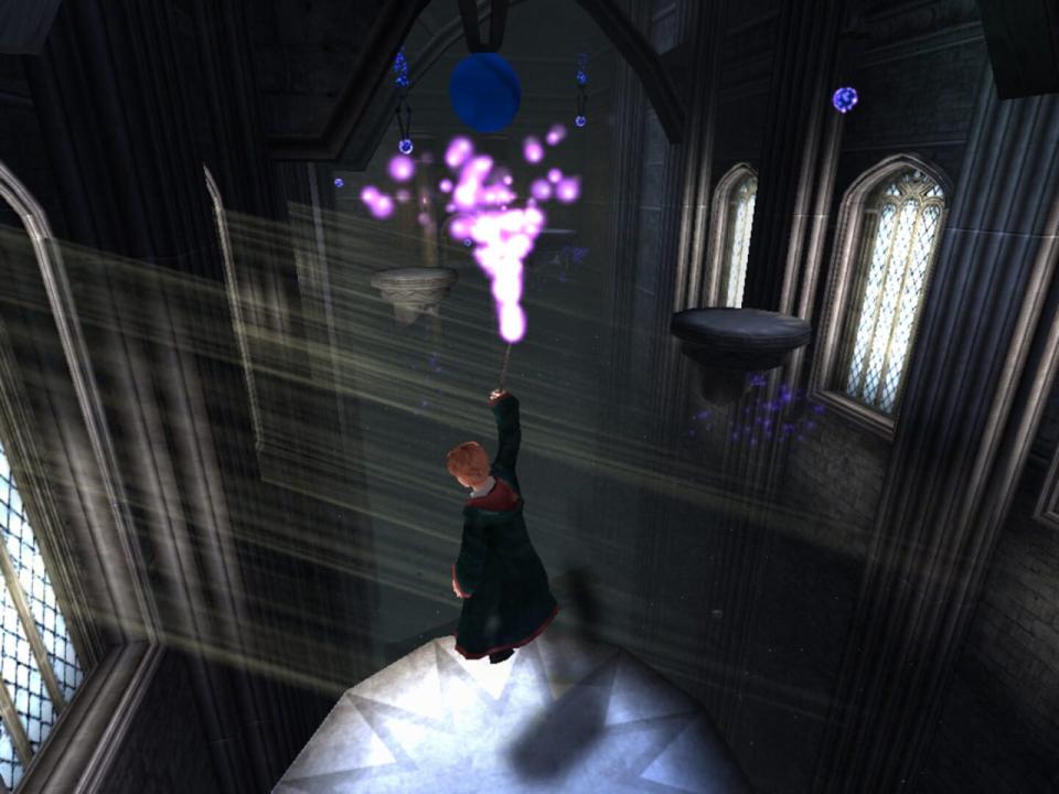 Harry Potter and the Prisoner of Azkaban is the sequel to Harry Potter and the Chamber of Secrets for PC and Mac, and features similar action-adventure and platforming gameplay. The player controls both Harry as well as his friends Ron and Hermione, while casting spells, solving puzzles and fighting enemies. When not engaged in a specific mission, the castle of Hogwarts can be freely explored. Scattered all around Hogwarts, usually in hidden areas, are Every Flavour Beans, Pumpkin Pasties and Cauldron Cakes, which function as a sort of currency. They can be traded for Collectors Cards, passwords for portraits that lead to more secret areas, and power-ups.