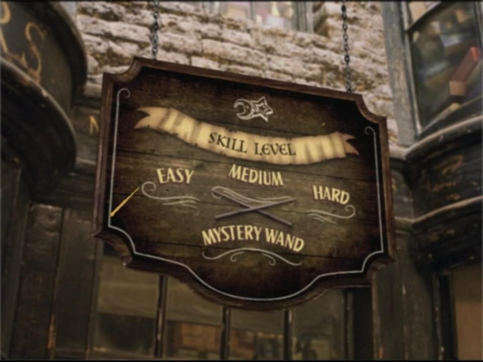 Harry Potter Interactive DVD Game: Hogwarts Challenge is based on the first three Harry Potter films and allows the player to become a wizard-in-training at Hogwarts. It's built around fourteen different mini games as well as short video clips from the movies. As a student the player has to take classes and each class is represented by a certain mini game that is played with the remote controller. The game is divided into three years and for each year the player has to complete three classes to reach the year-end challenge and then advance to the next year. Ultimately after all three years it's possible to win tickets for the Quidditch World Cup. In addition to classes there are also additional mini-games called extracurricular activities that are unlocked as classes are completed. The game can be played both alone or against up to three other human players. Each player then chooses one of the four houses at Hogwarts and compete against each other in trying to get the highest score. It is possible to customize the difficulty for each player and there is also a mystery wand option where the difficulty level changes depending on how well the player is doing.