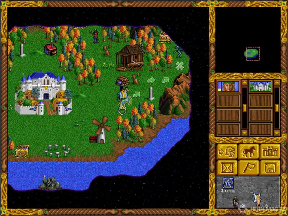 Heroes of Might and Magic: A Strategic Quest is a turn-based strategy game developed and published by New World Computing in 1995 for DOS. A spin-off of New World Computing's Might and Magic series of role-playing video games, the success of Heroes of Might and Magic led to a number of sequels. In 1996, NWC released an updated version of the game, ported to Windows 95. This new version included a map editor, random map generator, CD audio, and new scenarios. As a bonus, King's Bounty was also included on the CD.