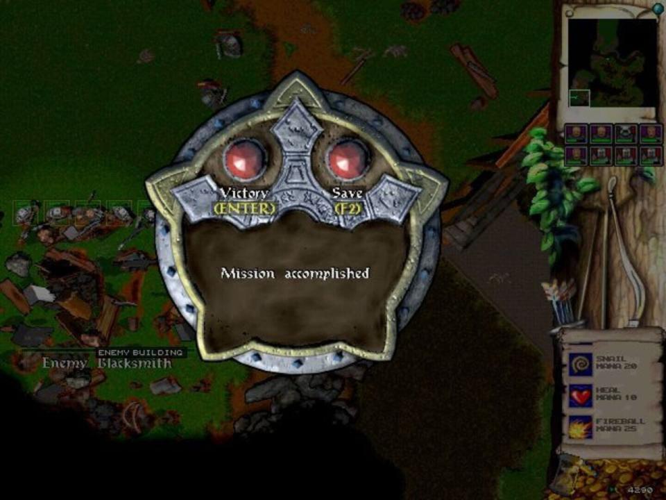 After the death of its emperor the Hesperian Empire breaks down and four races fight for the leadership. Each faction - Giants, Mages, Druids and Pygmies - can be played in their campaigns consisting of 20 missions. The missions goals are usually to destroy or protect something. The units have special abilities and an inventory to store items like potions, money or spells which are left behind from defeated enemies. They also can be upgraded by moving them in the appropriate building (e.g. a blacksmith) and spending money. There is no classical base building.