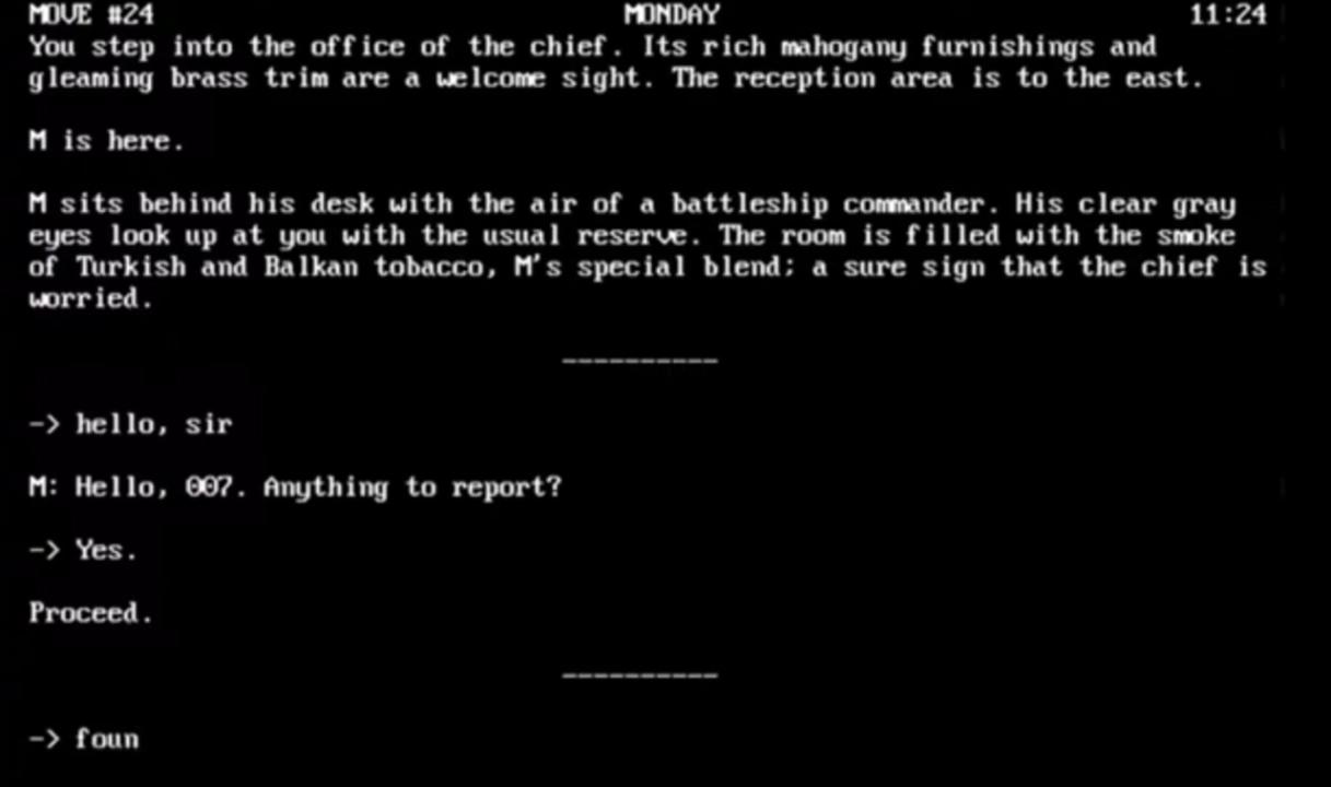 "James Bond 007: A View to a Kill" is a text adventure based on the James Bond film of the same name. Released in 1985 for DOS, Macintosh and Apple II computers, it was developed by Angelsoft, Inc. and published by Mindscape Inc.
