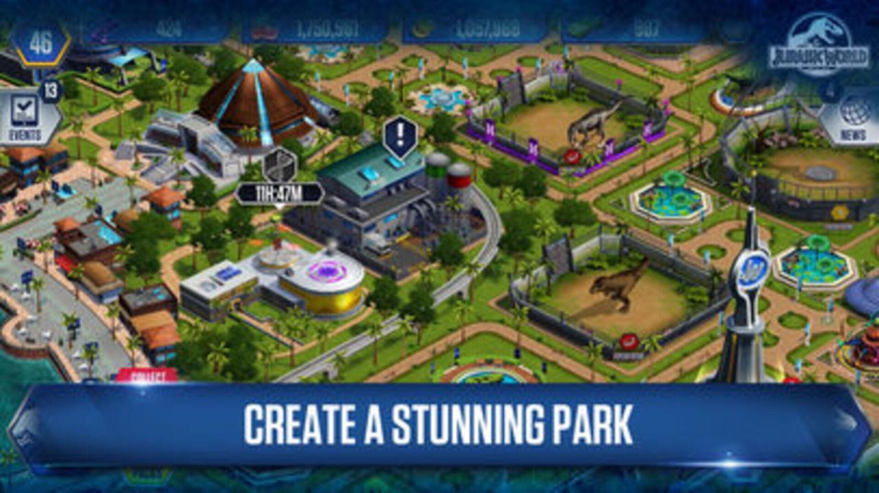 Return to Isla Nublar with the creators of the smash hit Jurassic Park Builder for your next adventure: Jurassic World: The Game, the official mobile game based on this summer’s epic action-adventure. Bring to life more than 50 colossal dinosaurs from the new film and challenge your opponents in earth-shaking battles. Construct the theme park of tomorrow in this unrivaled build-and-battle dinosaur experience. In order to build a winning Battle Arena team, you’ll need to design the most efficient and effective park, one that will allow your dinosaurs to thrive and evolve. Discover new and amazing species of dinosaurs by acquiring surprise-filled card packs. Join Owen, Claire and your favorite characters from the film as, daily, you feed and genetically enhance your dinosaurs. Now that the park is open, it’s time to make Jurassic World your own!
