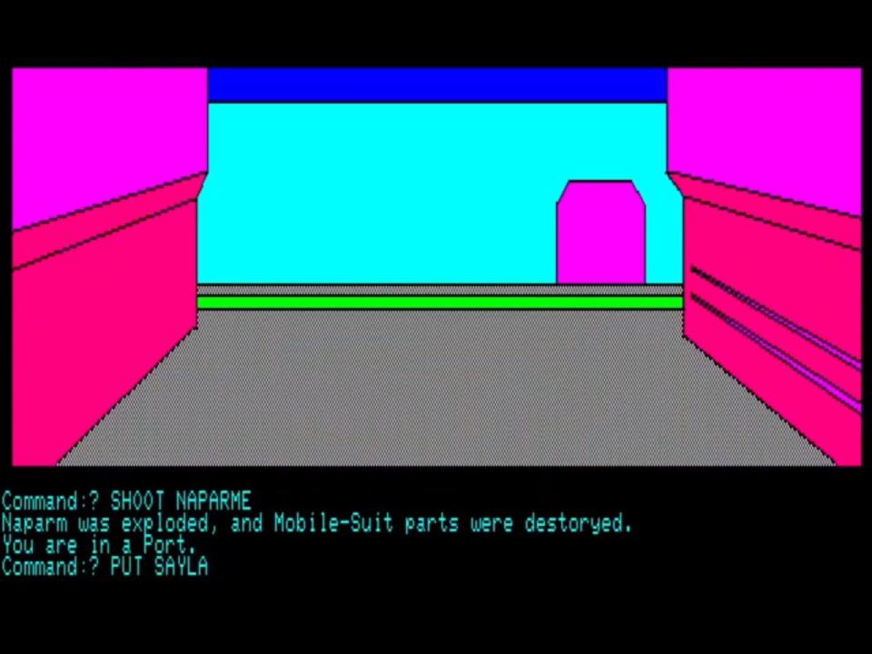 Kidou Senshi Gundam Part 1: Gundam Daishi ni Tatsu!! (機動戦士ガンダム PART 1 ガンダム大地に立つ!! "Mobile Suit Gundam Part 1: Gundam Stands on the Ground!!") is an adventure/shooter/RPG from 1983, based on the popular Mobile Suit Gundam anime television series.