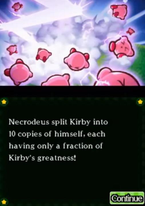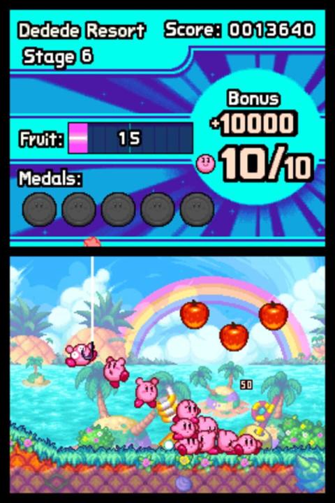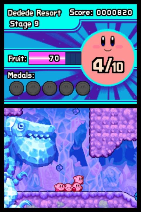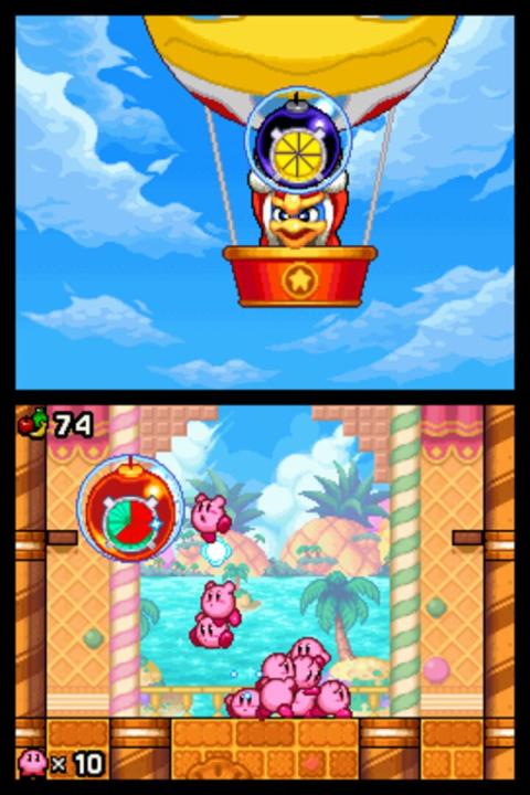 One day, an evildoer with a magic cane appears and splits Kirby into 10 pieces. Kirby sets off on a journey to return to his original form. Players use the touch screen to control a mass of Kirby characters in a new and novel way. Swipe the touch screen to launch them in a mass attack against enemies, then tap the enemies into submission.