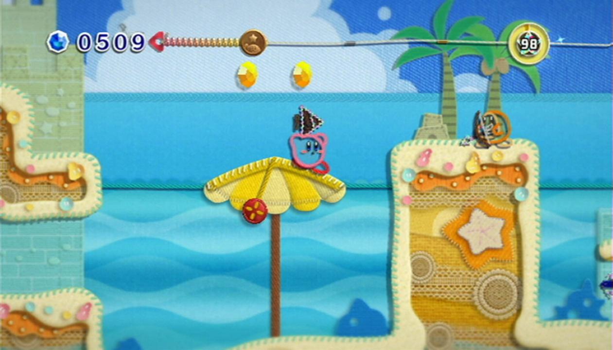 While walking through Dream Land, Kirby discovers a tomato and decides to eat it. Yin-Yarn, the evil sorceror who possessed the tomato (revealed to be a Metamato), appears and magically banishes Kirby into Patch Land, a world completely made of fabric, via the sock carried around his neck. In Patch Land, Kirby's body transforms into yarn, rendering his power to inhale useless. Instead, Kirby is granted the ability to transform by the magic of the Metamato, which he uses to rescue a boy being attacked by a monster. The boy, named Prince Fluff, explains that Yin-Yarn has separated Patch Land into pieces, which was tied together by magic yarn. Kirby decides to help Prince Fluff collect all seven pieces of the yarn and restore Patch Land. Meanwhile, Yin-Yarn captures King Dedede and Meta Knight and places them under his control. Kirby is forced to fight Dedede and Meta Knight after they ambush him in Patch Land. When Kirby and Prince Fluff finally collect all the Magic Yarn, Meta Knight, no longer under the sorceror's influence, informs Kirby that Yin-Yarn is turning Dream Land into fabric. Prince Fluff produces the second sock, its magic fully restored, and uses it to transport Kirby and himself to Dream Land; now completely made of yarn. Kirby confronts and defeats Yin-Yarn, breaking the spell and returning Dream Land and himself back to normal. Prince Fluff parts with Kirby, stating that he can visit Patch Land anytime via Yin-Yarn's magic sock.