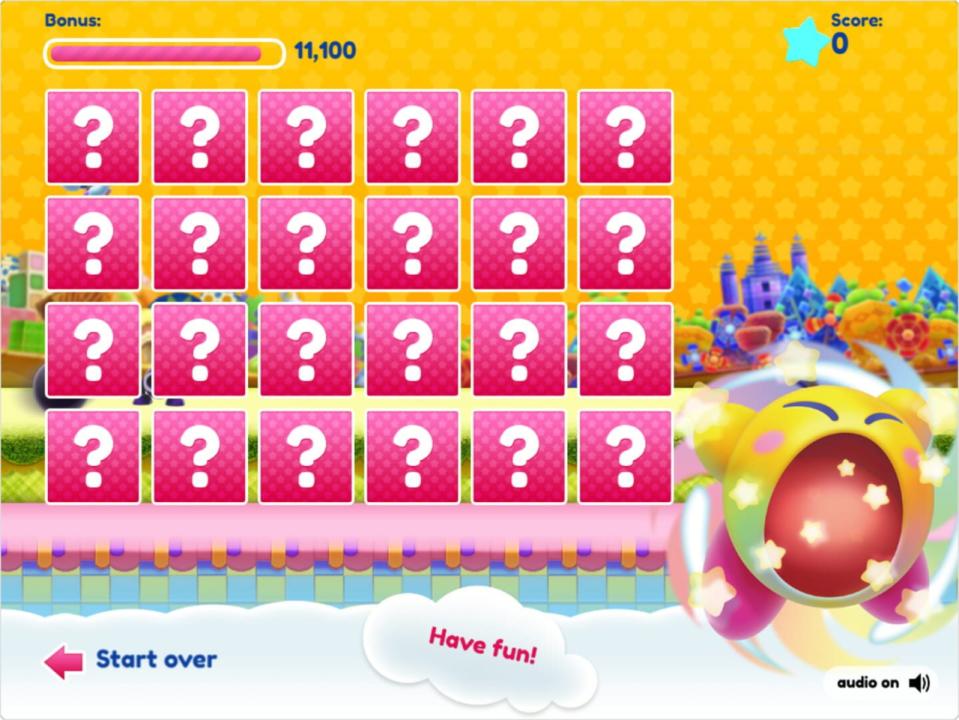 Kirby Triple Deluxe Match-Up a match-up member game based on the game Kirby Triple Deluxe.