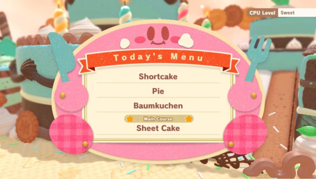 Kirby is about to eat some cake when the magic fork he is holding makes him tiny! He must compete with three other Kirbys to eat the most strawberries and win the Gourmet Grand Prix.