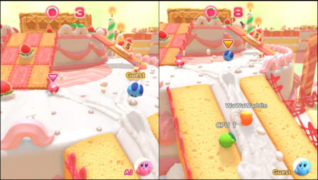 Hungry for some 4-player Kirby fun? Race through delicious obstacle courses, collect the most strawberries, and thwart your competition using familiar abilities.