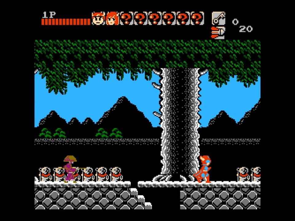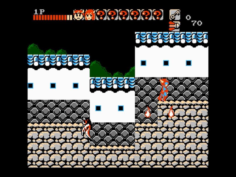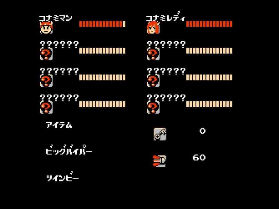 A difficult platformer with characters from the Konami world. You can play with Simon Belmont, Moai, Kong, Goemon, and others.