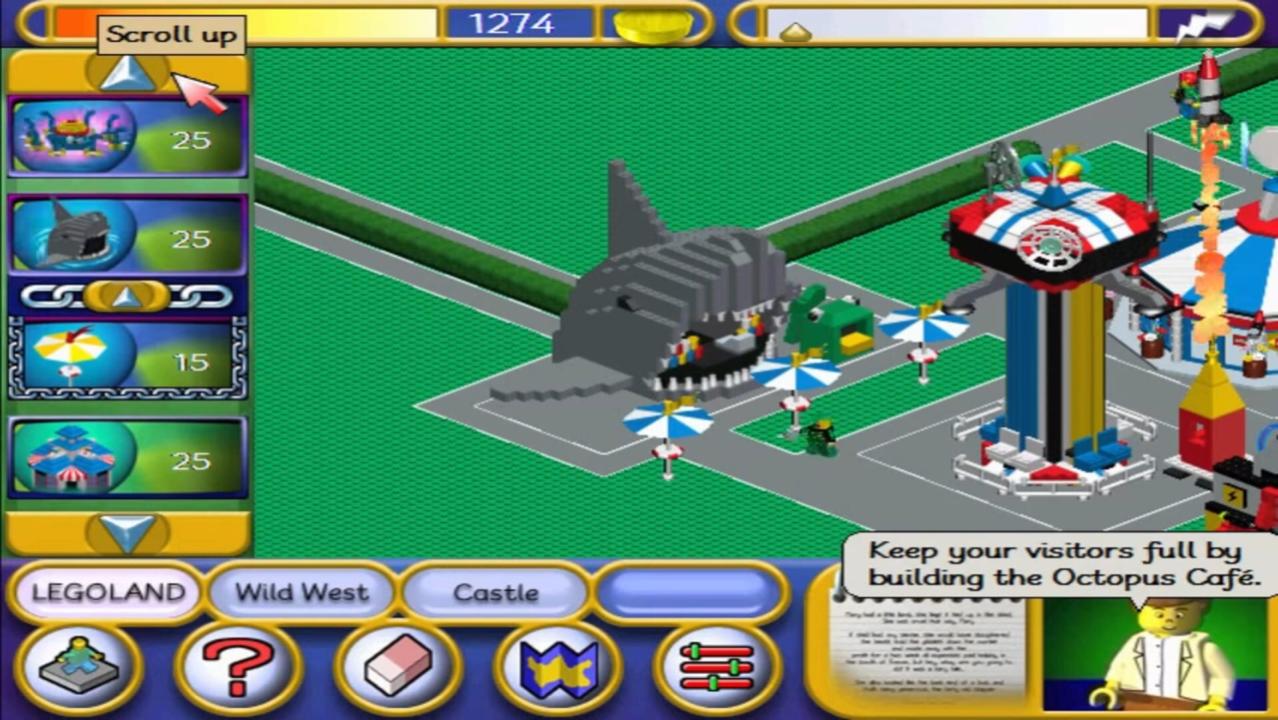 Legoland is an educational game that shows how to build a good park. You get the job as a park manager at a LEGOLAND Park. Professor Voltage creates a time machine, and when showing it to all the other park employees, the time machine breaks and the park blows up. As park manager you, the loudspeaker man Johnathon Ablebody, and Professor Voltage have to rebuild the park and make it better than before.