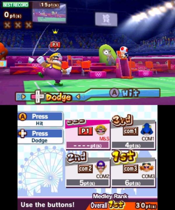 The 3DS version of Mario & Sonic at the London 2012 Olympic Games has some key differences from the Wii version. While it shares many events, it has more. It also features an exclusive Story Mode. The protagonists from the Mario and Sonic series team up to defeat Bowser and Dr. Eggman, who, along with their underlings, have taken over London. There are different parts to the story, depending on the character played. The player must win events against the antagonists. Playable characters consist of all 20 playable characters from the previous installment's Nintendo DS version, and are split into five groups of four.