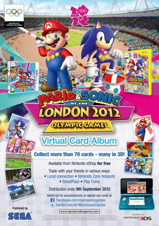 Mario & Sonic - London 2012 Virtual Card Album was a free downloadable app associated with Mario & Sonic at the London 2012 Olympic Games that was released in Europe by Nintendo and Sega under license from the International Olympic Committee to correspond with the 2012 London Olympics. When first announced at the June 2012 Nintendo Direct, it was called Mario & Sonic at the London 2012 Olympic Games Virtual Card Album.