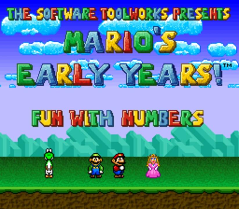 Mario's Early Years! Fun with Numbers is an educational Mario game that taught numbers and basic geometry to children. The game takes place on a set of islands to which Mario and Princess Peach sail. The player can click one of the islands to enter, after which the player sees Luigi asleep. Once the player clicks him, various activities must be performed to learn. Activities include counting objects, identifying shapes, comparing sizes, and sorting.