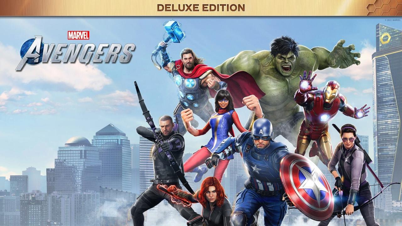 Marvel’s Avengers is an action-adventure game developed by Crystal Dynamics and published by Square Enix in 2020. It features both a single-player campaign and multiplayer missions, combining narrative-driven gameplay with cooperative online play. The story follows Kamala Khan as she reunites the Avengers after a catastrophic event. Players can control multiple heroes, each with unique abilities and skill trees. Marvel's Avengers: Deluxe Edition includes the exclusive Obsidian Outfit pack for the Avengers, including Captain America, Iron Man, Black Widow, Thor, Hulk, and Ms. Marvel, along with six exclusive Obsidian-themed nameplates to further customize the gameplay cosmetics. This edition also includes 72-hour early access.