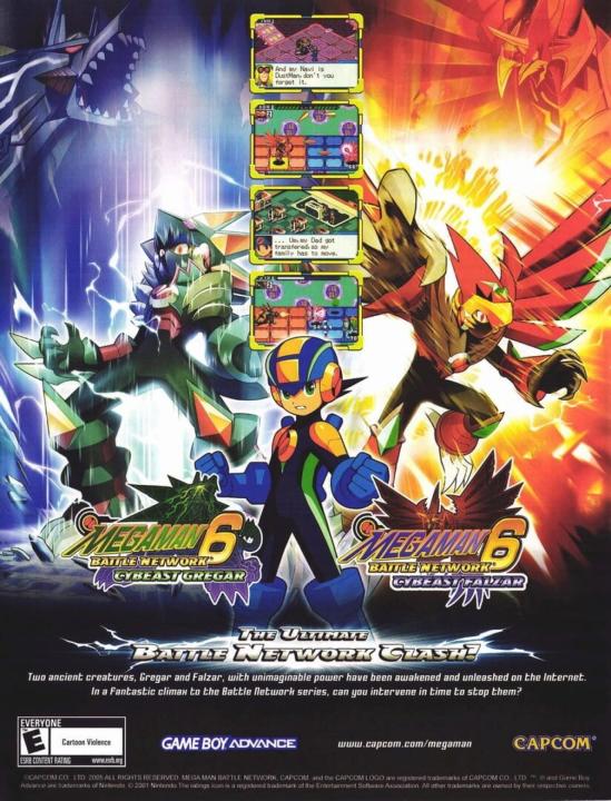 In Mega Man Battle Network 6, Lan's father has received a job transfer and the family moves to Cyber City, a town known for conducting various technological experiments. Lan will meet new people and build new friendships in the real world while Mega Man befriends helpful Navis and encounters dangerous new enemies on the virtual plane. Together they will face threats far more powerful and perilous than they ever have before.